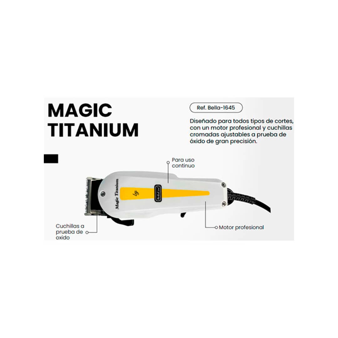 Una de las características clave de la BELLA-1645 es su motor potente y de larga duración, diseñado para soportar el uso continuo en un entorno profesional. Este motor asegura un corte eficiente y uniforme, incluso en cabellos gruesos o abundantes, facilitando el trabajo de barberos y estilistas.