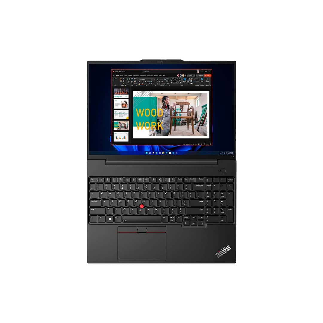 La pantalla de 16 pulgadas brinda una experiencia visual cómoda y nítida, ideal para trabajar, ver contenido multimedia o realizar videollamadas. Además, su diseño robusto y ergonómico, característico de la línea ThinkPad, garantiza resistencia y comodidad en el uso diario.