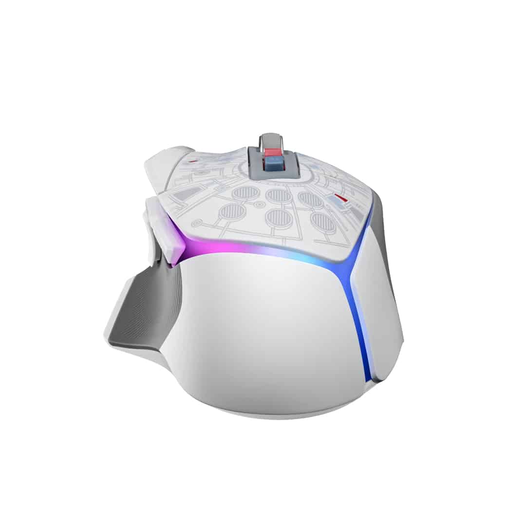 Esta edición especial del G502 X Plus rinde homenaje al Halcón Milenario, la emblemática nave de Star Wars. Su diseño único incluye detalles que evocan la estética del universo de Star Wars, convirtiéndolo en un objeto de colección para los fanáticos y entusiastas de la saga.