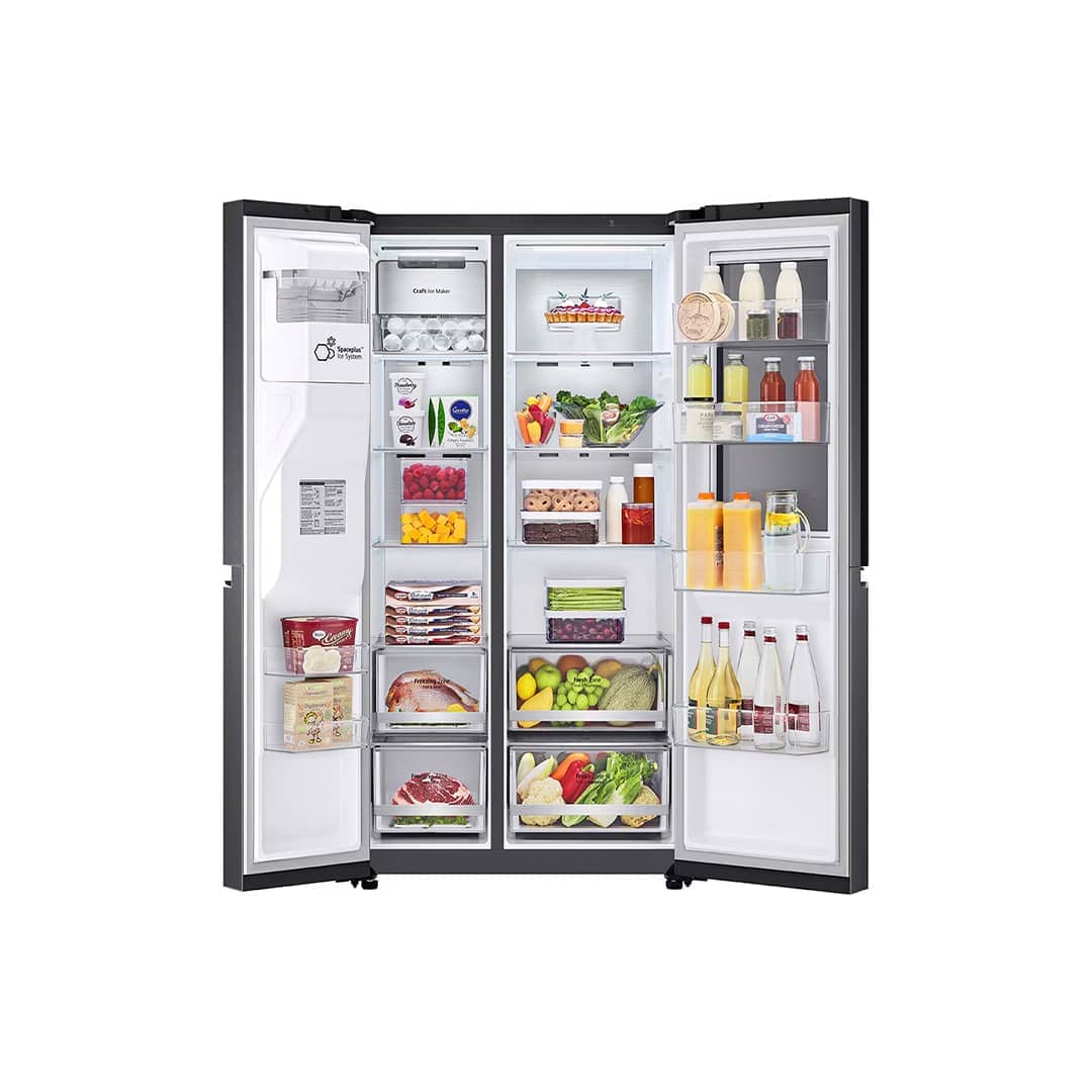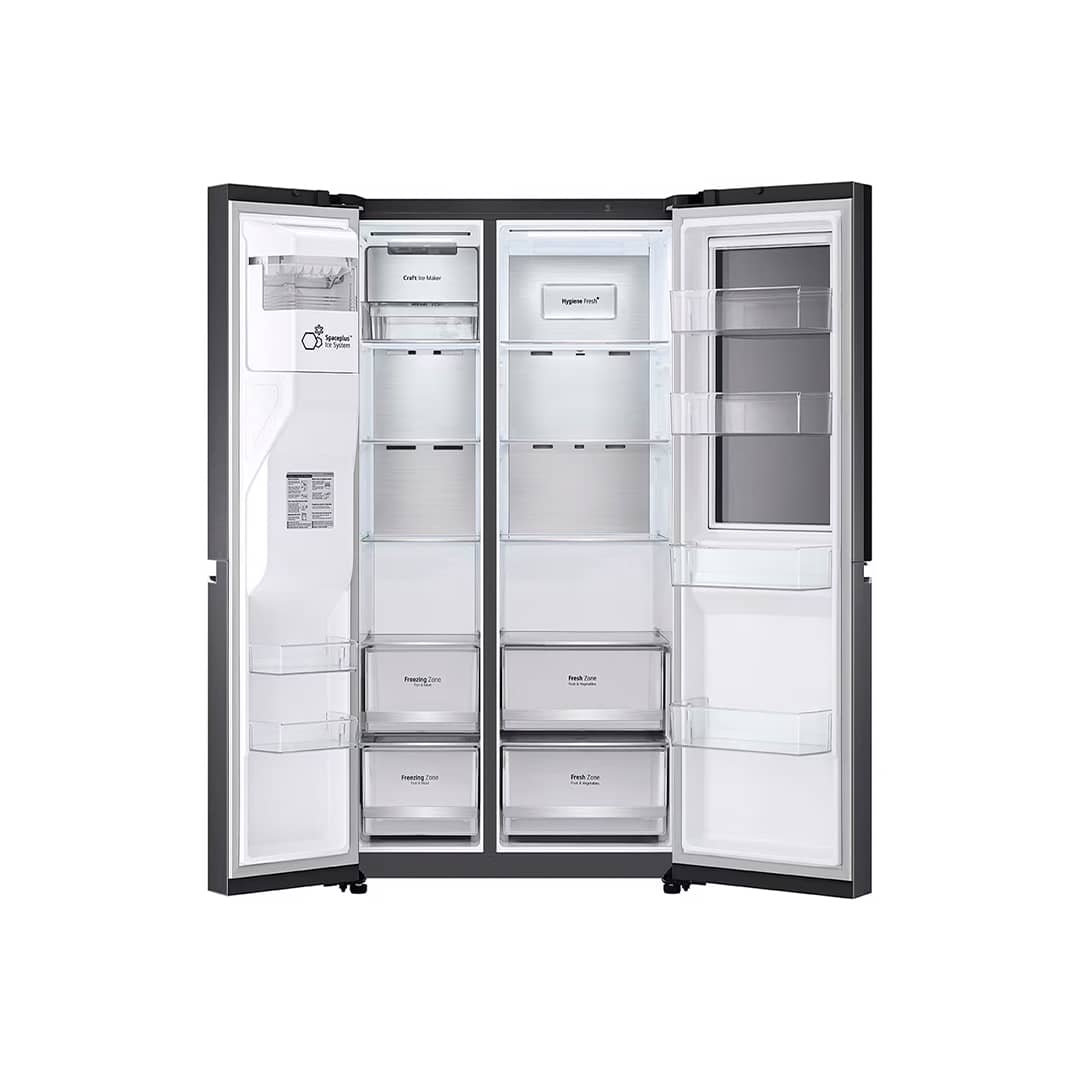La nevera LG VS25XHWCB es un modelo Side-by-Side que incorpora la innovadora tecnología InstaView Door-in-Door™, permitiendo a los usuarios ver el interior del refrigerador sin necesidad de abrir la puerta. Con solo dos toques en el panel de vidrio, este se ilumina, 1 revelando el contenido y ayudando a reducir la pérdida de aire frío, lo que contribuye a una mayor eficiencia energética y a mantener los alimentos frescos por más tiempo.