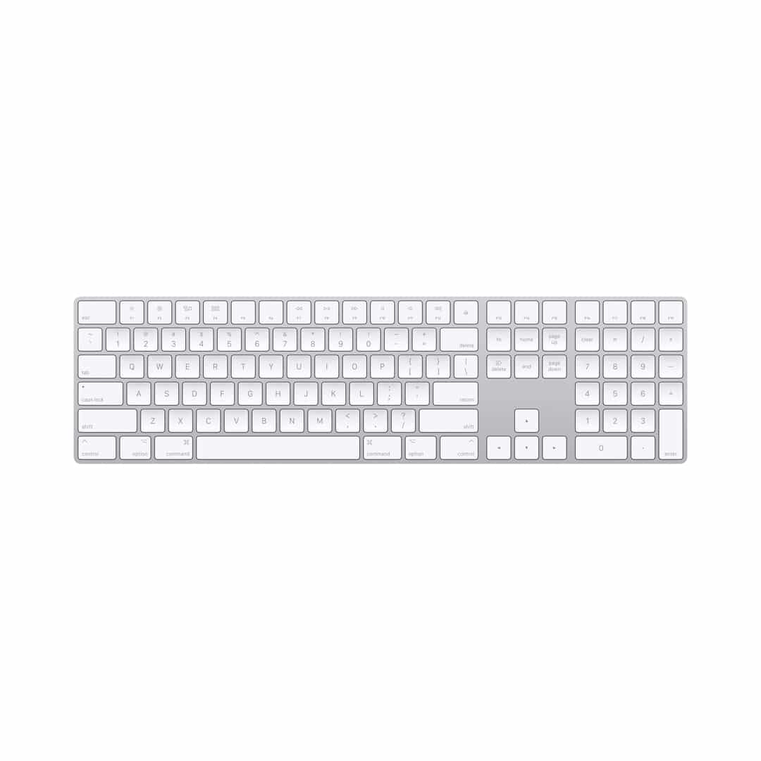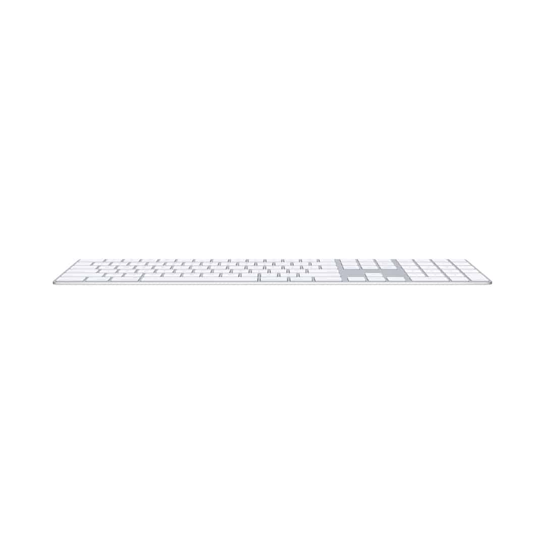 Con su acabado blanco y perfil delgado, el Magic Keyboard se integra perfectamente en cualquier espacio de trabajo. Su estética minimalista no solo es atractiva, sino que también optimiza tu entorno.